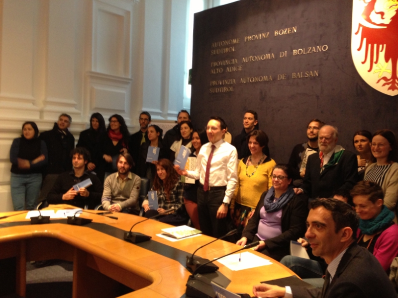 Al termine della presentazione avvenuta, oggi, venerdì 28 febbraio, a Palazzo Widmann a Bolzano, i vari soggetti coinvolti hanno simbolicamente sottoscritto il manifesto con i loro loghi.