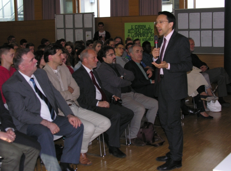 Nel corso della mattinata sono state quindi tenute due brevi relazioni introduttive rispettivamente del professor Christian Zelger e dello studente universitario Domenico Rosani incentrate sul ruolo del'Europa e sull'importanza di un'apertura dei giovani e della scuola verso una dimensione culturale sempre più europea.