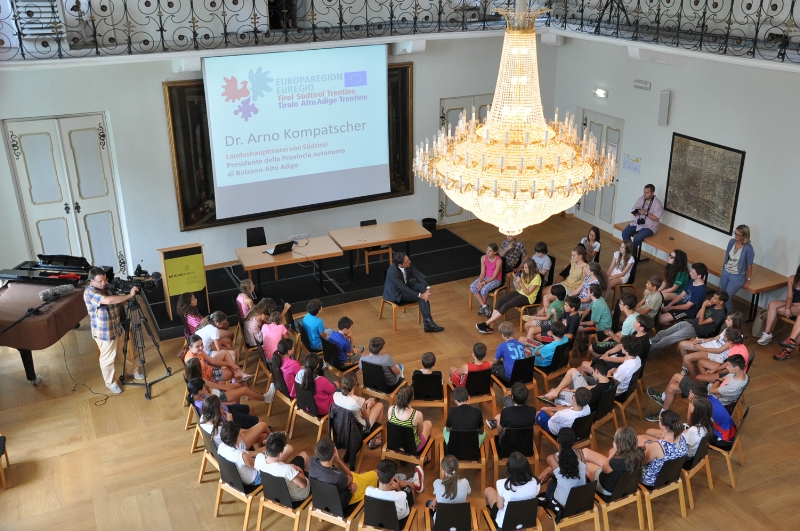 La seconda edizione dell'Euregio Summer Camp è in svolgimento fino al 27 luglio al centro di formazione dell'abbazia di Novacella, dove si ritrovano 60 giovani tra 11 e 14 anni. Natura, cultura e avventura sono al centro di una settimana in cui i ragazzi possono migliorare le loro conoscenze linguistiche nell'incontro con i coetanei di lingua italiana e tedesca. Nel primo pomeriggio hanno avuto una visita particolare, quella del presidente della Provincia Arno Kompatscher, a cui hanno rivolto svariate domande, in parte anche sulla vita privata, e alle quali Kompatscher ha risposto nelle due lingue.