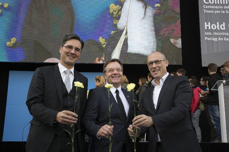 Quest'anno il treno della memoria, nell'ambito delle celebrazioni del centenario della prima guerra mondiale, ha portato 400 giovani di Alto Adige, Trentino e Tirolo nell'Europa dell'est, e in particolare nella regione della Galizia, dove sono stati raggiunti anche dal presidente della Provincia di Trento, Ugo Rossi. "Voi siete il nostro futuro - ha spiegato Rossi rivolgendosi ai ragazzi - impegnatevi affinchè il mondo possa cambiare in meglio". Sulla stessa lunghezza d'onda si è espresso anche il presidente tirolese Günther Platter, il quale ha aggiunto che "coloro che hanno partecipato a questo viaggio nei luoghi della memoria contribuiscono a rendere l'Europa un continente di pace".