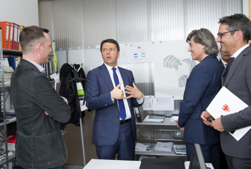 Dopo la sosta all'aeroporto del capoluogo, dove ha incontrato i due governatori Arno Kompatscher e Ugo Rossi, il premier Matteo Renzi è stato accompagnato anche dagli assessori al'istruzione Christian Tommasini, Philipp Achammer e Florian Mussner all'interno della Stahlbau Pichler, azienda della zona industriale in forte espansione. "Dobbiamo essere orgogliosi di una realtà come questa - ha spiegato Renzi - capace di andare a prendersi il futuro senza aspettarlo e in grado di cogliere le opportunità offerte da Expo". Ben 9 padiglioni dell'esposizione mondiale milanese, tra cui quello dell'Italia, sono infatti stati costruiti dall'impresa bolzanina che realizza strutture in acciaio, vetro e metallo.