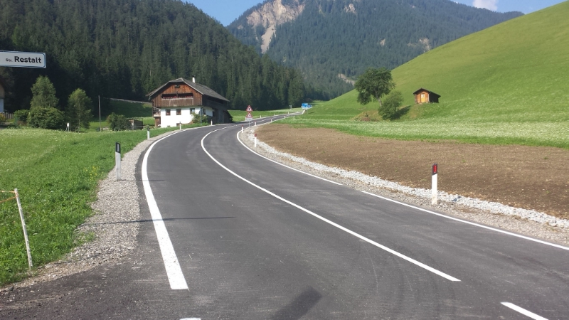 La strada provinciale Eores-S.Martino in Badia dopo la rettifica è all'altezza delle esigenze del traffico (Foto: UffTecStradeNordEst/M.Pinzan)