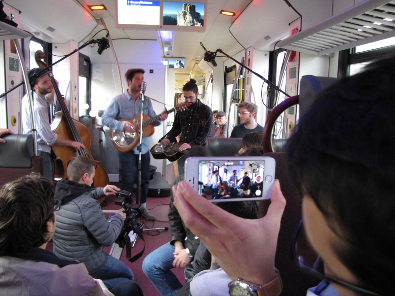 Sabato scorso, 21 novembre è partito puntuale alle 14.15 da Trento il treno speciale di UploadSounds con destinazione Innsbruck e Bolzano con a bordo un carico di musica live. Dopo il saluto da parte dell'assessore alla Cultura della Provincia di Trento Tiziano Mellarini, presente alla stazione del capoluogo trentino per l'occasione, il treno è scivolato sui binari e l'esibizione ha avuto inizio. I vagoni si sono trasformati in un vero e proprio palcoscenico, che ha richiesto nei giorni precedenti un accurato allestimento da parte dello staff organizzativo.
