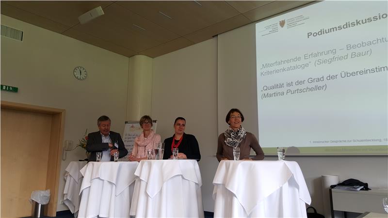 Tema della 1a edizione degli "Innsbrucker Gespräche", articolata in due giornate, era "Fornire valori - accertare la qualità".Dopo tre relazioni introduttive gli esperti hanno potuto scambiare opinioni ed esperienze nel forum di discussione articolato secondo il modello del World Café.