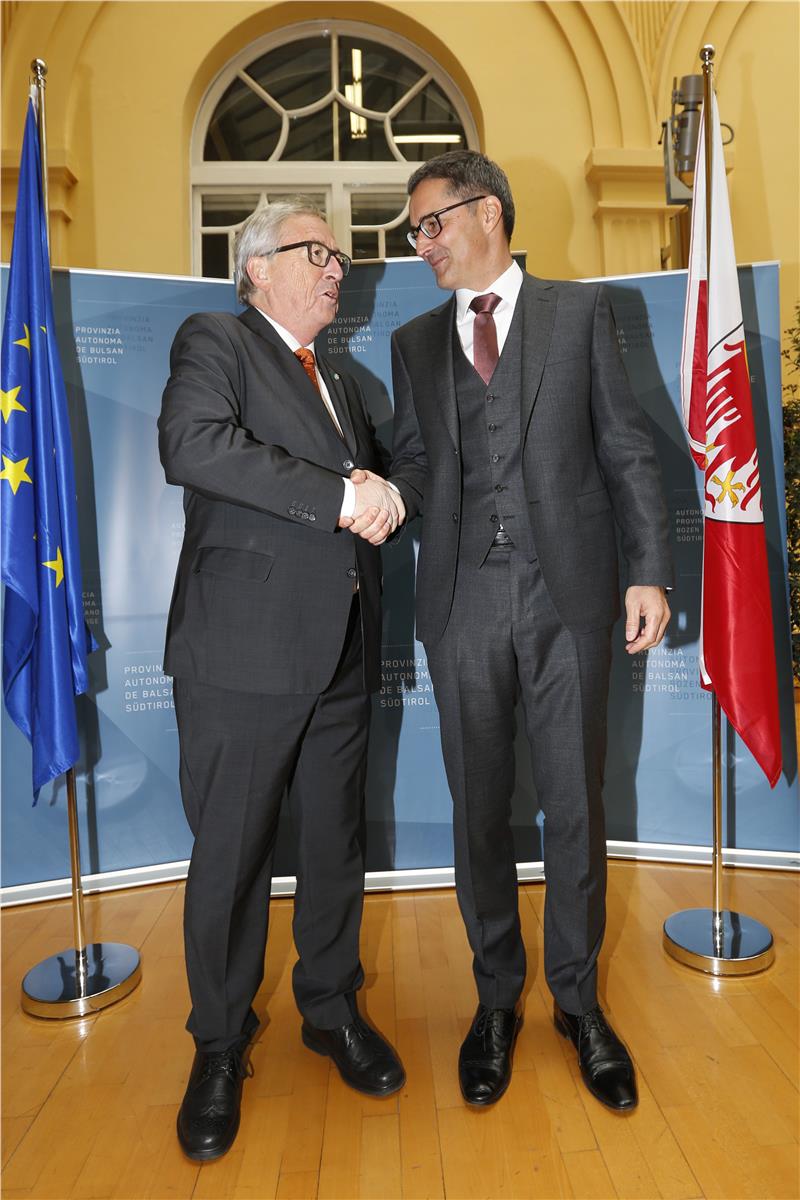 Nel colloquio con Juncker il presidente Kompatscher si è soffermato anche sui punti che riguardano la politica regionale, tra cui l’agricoltura montana, il mantenimento dei fondi strutturali dopo il 2020 e la strategia EUSALP della macroregione alpina (5 Paesi, 48 regioni e 70 milioni di abitanti). Prima di trasferirsi alla LUB per il convegno, Juncker e Kompatscher hanno discusso anche di tutela delle minoranze: il Presidente della Provincia ha ricordato l’ICE (iniziativa dei cittadini europei) denominata "Minority Safepack" e ideata dalla FUEN ((Federal Union of European Nationalites) in materia di diritti delle minoranze per tutelare le persone appartenenti a minoranze nazionali e linguistiche e rafforzare la diversità culturale e linguistica nell’UE. Unità di vedute, infine, sul futuro ruolo delle Regioni quale veicolo del pensiero e dello sviluppo europeo: le Regioni sono un anello centrale di congiunzione fra cittadini e Europa e in tal senso anche il Comitato delle Regioni UE ha un ruolo particolarmente significativo e merita la piena attenzione delle istituzioni europee.
