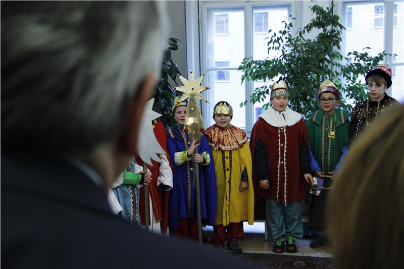 La tradizione vuole che tra il 27 dicembre e l'Epifania, circa 6mila ragazzini di tutte le parrocchie dell'Alto Adige girino di casa in casa, vestiti da Re Magi, per raccogliere offerte a scopo benefico. L'azione dei cantori della stella, gli Sternsinger dell'Associazione giovanile cattolica tedesca (Katholische Jungschar) serve a finanziare ogni anno oltre 100 progetti di cooperazione destinati ai bambini meno fortunati di tutto il mondo. Questa mattina (29 dicembre), un gruppo di 13 Sternsinger di Castelrotto, guidati dai loro accompagnatori, hanno incontrato a Palazzo Widmann la Giunta provinciale, rappresentata nell'occasione dagli assessori Waltraud Deeg, Philipp Achammer e Florian Mussner. Assente, invece, il presidente Arno Kompatscher, impegnato a Roma per il via libera alla norma di attuazione sulla giustizia.