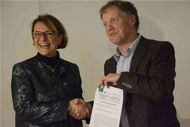 da sx: la preside dell'I.T.C.A.T. "Delai" Paola Burzacca e il presidente del Collegio dei Geometri e GL Gert Fischanaller (Foto: USP/M.Diquirico)