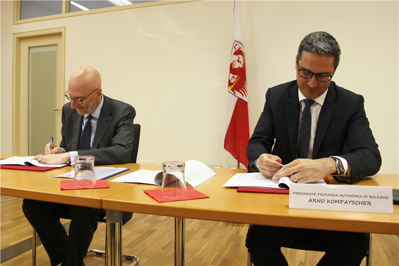 "Un'altra giornata importante per l'autonomia altoatesina, che ha raggiunto un nuovo grande traguardo: garantiamo un servizio postale di qualità, sicuro e innovativo a cittadini e imprese, migliorando la competitività del territorio". Con queste parole Arno Kompatscher ha commentato la firma dell'accordo con Poste Italiane: l'intesa è stata sottoscritta questa mattina (5 aprile) presso l'ufficio di Roma della Provinca di Bolzano da parte del presidente Kompatscher e dell'amministratore delegato di Poste Italiane, Francesco Caio. "Oggi - ha sottolineato il Landeshauptmann - chiudiamo orgogliosamente una trattativa lunga e caratterizzata da una positiva collaborazione con Poste Italiane e il Ministero dell’economia e delle finanze. Grazie all'accordo di Milano, la Provincia concorre agli obiettivi di risanamento del debito pubblico nazionale facendosi carico di una serie di oneri che garantiranno un migliore servizio sul territorio altoatesino".