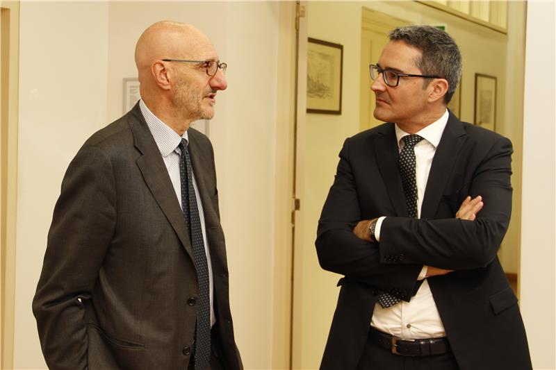 Stretta di mano: l'ad di Poste Italiane, Francesco Caio, con il presidente Arno Kompatscher (Foto USP/mb)