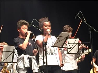 Un gruppo di alunni nel corso dell'esibizione alla terza edizione di MediArtisti