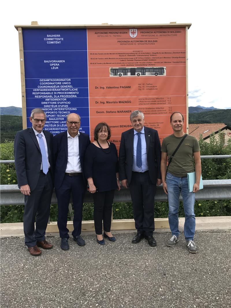 Bus di grandi dimensioni, corsie preferenziali, semafori intelligenti. Sono queste le parole chiave del nuovo metrobus Bolzano-Oltradige, progetto che però mette l'utente al centro anche per quanto riguarda stazioni e fermate, che devono rispettare elevati standard di qualità, accessibilità e comodità. A tal proposito, prenderanno il via la settimana di ferragosto i lavori per la nuova fermata di Pianizza di Sotto, e gli interventi sono stati al centro di un incontro tra l'assessore provinciale alla mobilità Florian Mussner, la sindaca e il vicesindaco di Caldaro, Gertrud Benin Bernard e Werner Atz, il direttore di dipartimento Valentino Pagani e Davide Ziller dell'Ufficio tecnico strade nord-est. "La previsione della precedenza assegnata al metrobus - ha spiegato Mussner - comporta una serie di interventi strutturali che consentiranno di ridurre i tempi di percorrenza e il traffico di circa un terzo, nonchè di migliorare la qualità della vita, abbattere l'inquinamento acustico e ridurre le emissioni nocive". Per Pagani, inoltre, gli ultimi lavori rappresentano "un ulteriore passo in avanti per il progetto metrobus e un tassello rilevante della mobilità sostenibile. Ogni lotto realizzato comporta fina da subito un sensibile miglioramento".