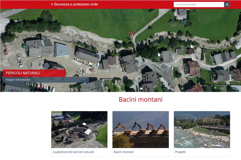 Pochi mesi fa è stata la volta del meteo, ora tocca ad altri due portali gestiti dall'Agenzia per la protezione civile. Sono online da quest'oggi (27 settembre) le nuove pagine internet dedicate a due importanti tematiche che vedono l'amministrazione provinciale in prima linea: si tratta della protezione civile e dei bacini montani. "Dalla primavera del 2015 - sottolinea l'assessora all'informatica Waltraud Deeg - stiamo ristrutturando e riammodernando tutta la presenza della Provincia di Bolzano sul web, rendendo le informazioni e i servizi più facilmente e semplicemente accessibili da parte degli utenti". "Sia la protezione civile che i bacini montani - aggiunge l'assessore Arnold Schuler - rappresentano tematiche di interesse generale per tutta la popolazione: grazie ad un nuovo layout e a una struttura di più immediata comprensione, anche argomenti per certi versi complessi possono diventare più facilmente fruibili".