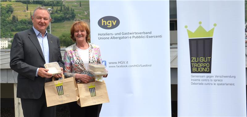 A partire dal 7 maggio sono disponibili per gli associati presso le sedi di Bolzano, Bressanone, Brunico, Merano e Silandro dell’Unione albergatori e pubblici esercenti dell'Alto Adige (HGV) i contenitori in materiale riciclato, i cosiddetti Doggy bag, grazie ai quali i clienti potranno portare con sé gli alimenti non consumati nei ristoranti altoatesini. Lo slogan dell’iniziativa è "troppo buono per finire nei rifiuti". Si tratta di un'ulteriore misura contro lo spreco alimentare prevista dall’apposita legge provinciale approvata nel marzo scorso che mira a ridurre lo spreco di generi alimentari ed a promuovere, tra l’altro, il riutilizzo anche di vestiti e di medicinali a favore delle fasce più deboli della popolazione. L’adozione dei contenitori riciclabili nei ristoranti altoatesini è il frutto della proficua collaborazione del Dipartimento alla salute della Provincia con l’HGV presieduta da Manfred Pinzger. Tale collaborazione è stata sancita nel corso di una recente visita dell’assessora Martha Stocker presso la sede dell’HGV durante la quale sono stati definiti gli ultimi dettagli dell’iniziativa.