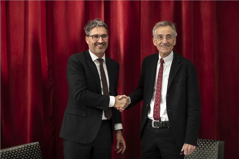 Kompatscher e il rettore dell'Università di Innsbruck firmano l'accordo (Foto USP/Ivo Corrà)