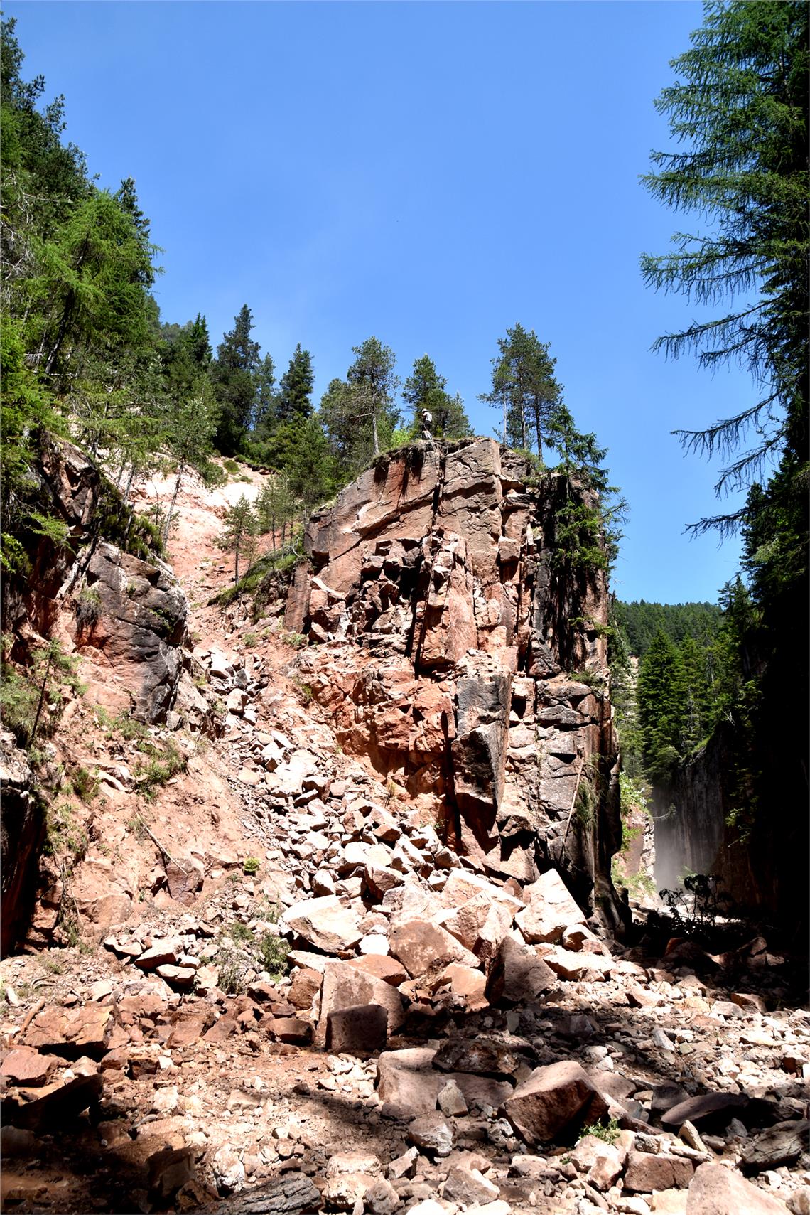 Le fessure nel costone di porfido del canyon Bletterbach prima della sua messa in sicurezza - Foto: USP/Ufficio geologia e prove materiali