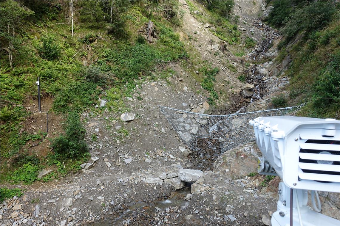 Nella zona di Tovo di Tel fra Lagundo e Parcines l’Ufficio sistemazione bacini montani ovest ha realizzato una nuova rete di protezione contro le frane. Si tratta di una barriera costruita con cavi e reti in acciaio e ancorata al suolo per mezzo di un cavo di ancoraggio nel letto del torrente e sugli argini. La barriera è alta circa 4 metri e larga tra 6 e 12 metri, riferisce il responsabile del cantiere Roland Schweitzer dell'Ufficio sistemazione bacini montani ovest dell'Agenzia per la protezione civile. Si tratta di un manufatto di tipo innovativo costruito dalla squadra di operai guidati da Stefan Kobald. Nel mezzo della barriera al livello del ruscello il manufatto presenta un'apertura, così che la rete possa svuotarsi il più autonomamente possibile in caso di eventi e piene di media entità.