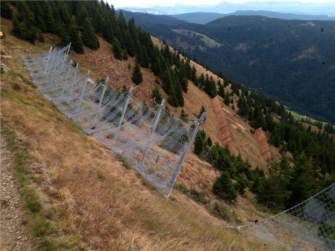 Sopralluogo lungo il pendio che sovrasta la frazione Maierhöfe nel comune di Proves. Installate protezioni paravalanghe.