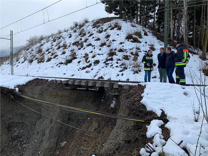 Gli assessori Alfreider e Bessone insieme al sindaco Reden hanno visitato il luogo dove ieri (19 novembre) si è verificata la frana della massicciata sulla quale corrono i binari. Riapre la statale