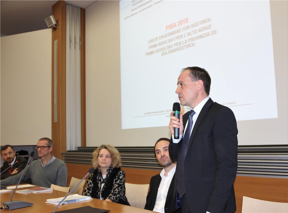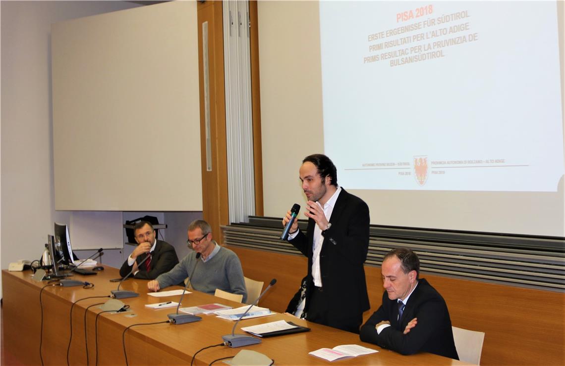 Sono stati presentati questa mattina (4 dicembre) dal responsabile dell'Area prove INVALSI, Roberto Ricci, i dati dell’indagine OCSE-PISA 2018, relativi alle scuole dei tre gruppi linguistici. La ricerca viene svolta ogni 3 anni su ragazze e ragazzi di 15 anni rilevando le competenze in lettura, matematica e scienze, nel 2018 ha interessato 79 paesi in tutto il mondo e ha avuto come focus principale la lettura. "L’indagine non mira a valutare la conoscenza dei contenuti delle discipline, che verranno valutati dai singoli sistemi scolastici e che sarebbero anche difficilmente comparabili tra loro. Quello che valuta la ricerca OCSE PISA è la capacità di affrontare e risolvere i problemi della vita quotidiana e di riuscire a continuare ad apprendere in futuro” ha sottolineato sottolinea Roberto Ricci.