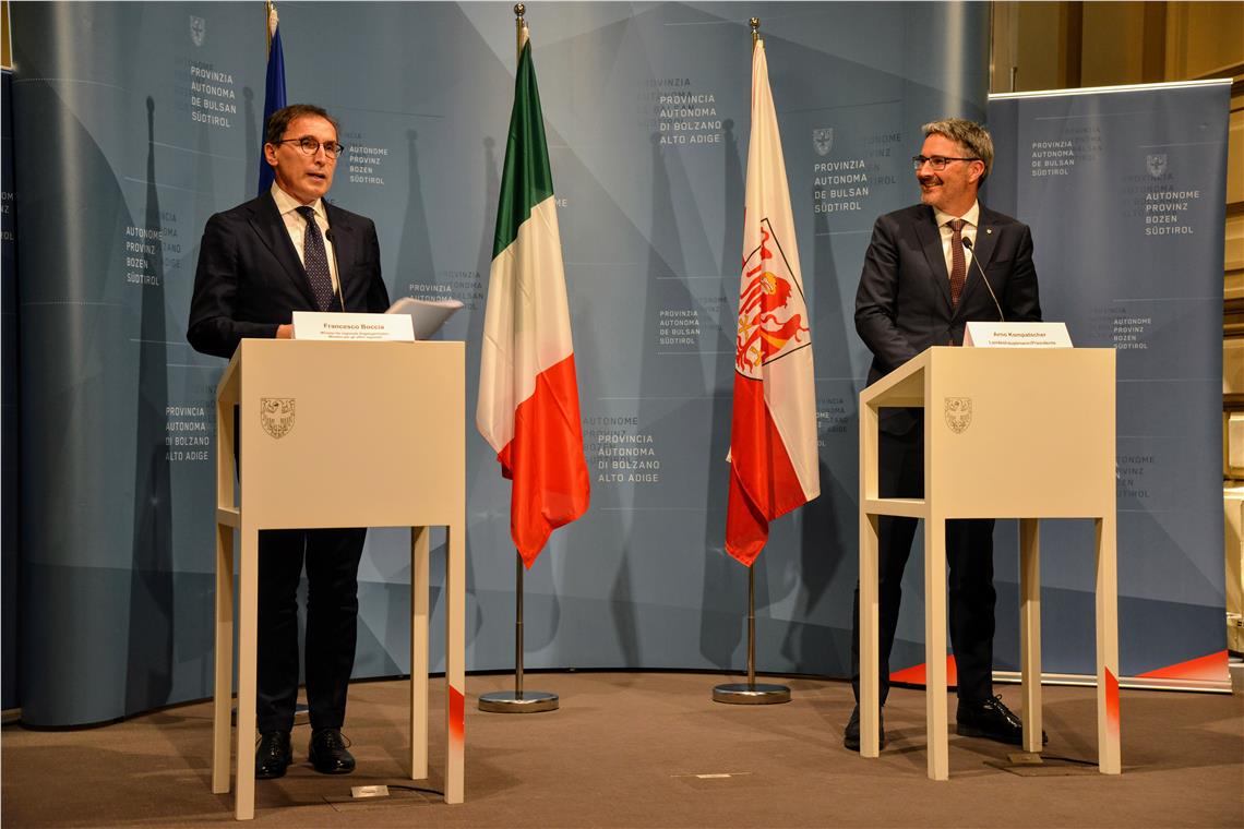 “La visita del ministro - ha riferito Kompatscher – mi ha consentito di fare il punto della situazione e illustrare i contenuti della nostra proposta legislativa che ora è all’esame del Consiglio provinciale”. Secondo il presidente “la strada che abbiamo deciso di percorrere è in linea con i principi espressi dal governo per quanto riguarda la tutela dei lavoratori e di tutti i cittadini, ed è anche espressione della nostra autonomia, che è sinonimo di responsabilità”. “Abbiamo diverse posizioni – ha aggiunto – per quanto riguarda la differenziazione territoriale, ma con il dialogo di oggi abbiamo gettato le basi per il lavoro delle prossime settimane”. Kompatscher ha affrontato con il ministro anche la questione dei rapporti finanziari "alla luce della quasi certa riduzione del gettito fiscale" e ricordato al ministro che “il turismo è il motore della nostra economia”, augurandosi che venga presto ripristinata la mobilità all’interno dell’Unione europea. Altro tema affrontato dalle due delegazioni è quello di come “garantire la presenza, in sicurezza, dei lavoratori stagionali”.