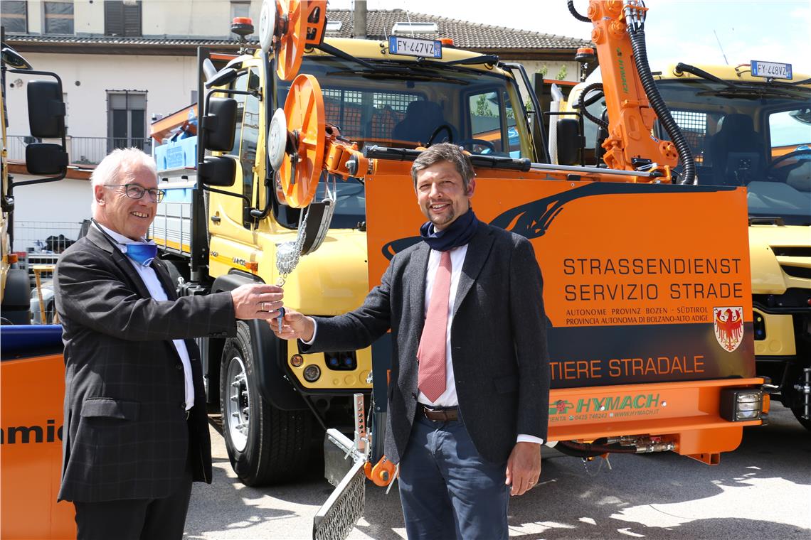 Sette nuovi mezzi Unimog sono stati consegnati di recente e possono essere utilizzati negli interventi a cura del Servizio strade. Si tratta di veicoli meno inquinanti Euro 6 che vanno a sostituire mezzo datati con motore Euro 0. I nuovi Unimogs si prestano in modo particolare per eseguire interventi di sgombro neve, per lo sflacio dei versanti stradali e per molteplici attività. "Il parco mezzi sarà rinnovato nei prossimi mesi e anni, affinché le strade continuino ad essere sicure per il futuro grazie alla buona manutenzione", afferma l'assessore provinciale alla mobilità Daniel Alfreider.