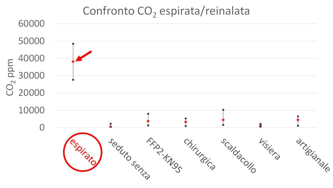 Lo studio è stato realizzato dal Laboratorio analisi aria e radioprotezione dell’Agenzia provinciale per l’ambiente e la tutela del clima. Nell’ambito delle analisi è stata quantificata la percentuale di CO2 re-inalata rispetto a quella espirata. A tal fine sono state prese in esame diverse tipologie di dispositivi di copertura naso-bocca: mascherina artigianale, mascherina chirurgica, FFP2 o KN95, visiera e fasce di stoffa. "L’aria che espiriamo - afferma Luca Verdi, direttore del Laboratorio Analisi e radioprotezione - contiene un’elevata concentrazione di anidride carbonica, circa 40.000 ppm, ovvero il 4%. Dallo studio è emerso che indossando un dispositivo di copertura naso-bocca si ha comunque un notevole ricambio d’aria che porta ad una consistente riduzione della concentrazione di CO2. Più precisamente la percentuale di anidride carbonica espirata che viene re-inalata varia da un minimo del 3% con la visiera, a un massimo del 14% con la mascherina artigianale".