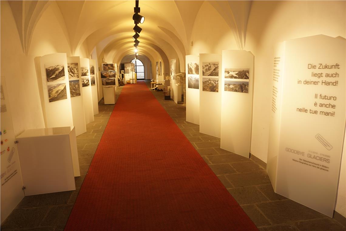 Punto di forza dell’esposizione sono senza dubbio i confronti fotografici che descrivono in modo inequivocabile il ritiro dei ghiacciai e gli effetti dei cambiamenti climatici. Tra queste lo scatto più datato è quello in cui Gustav Jägermayer nel 1863 ritraeva il Picco dei Tre Signori, alla testata della Valle Aurina, con le Vedrette di Lana e Predoi. Tutti i gruppi montuosi di questa parte delle Alpi sono peraltro rappresentati, dal Gruppo dell’Ortles alle Vedrette di Ries. La relazione causa effetto è inoltre resa dai dati climatologici rappresentati in una serie di installazioni che completato la mostra, ove sono anche esposti vari strumenti per la misura delle variabili climatiche, oltre a numerosi reperti e oggetti che caratterizzano l’ambiente glaciale e periglaciale e le sue modificazioni recenti.