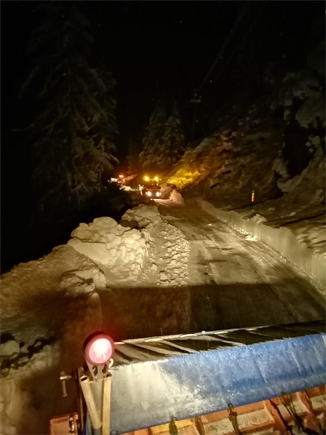 Mezzi del Servizio strade all'opera anche durante le ore notturne in Val Senales (Foto: ASP/Servizio strade)