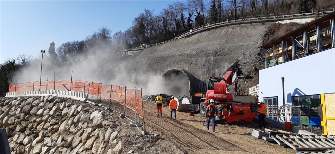 Come per ogni costruzione di una galleria vengono prima controllate le condizioni degli edifici in zona. A tale scopo, i tecnici hanno installato dispositivi che misurano le vibrazioni innescate dalle esplosioni ad esempio su edifici storici come la torre di Castel San Zeno e la relativa cappella, ma anche su case private che si trovano in corrispondenza del percorso. Attualmente sono stati installati undici punti di misurazione. Man mano che l'avanzamento del tunnel procede, verranno aggiunti ulteriori punti di misurazione. Tutti i dati di questo ampio sistema di monitoraggio vengono continuamente valutati dai tecnici. "Questi valori vengono misurati principalmente per garantire che i valori limite specificati nella norma DIN 4150 possano essere mantenuti", afferma Strimmer.