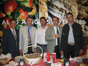 L'assessore Frick alla promozione dei prodotti altoatesini allo stadio "Meazza" di San SiroIn qualità di sponsor ufficiale del match l'Alto Adige ha potuto presentate nell'area Vip i propri prodotti contraddistinti dal marchio di qualità, dallo speck alle mele e al vino. All'azione promozionale erano presenti, oltre all'assessore provinciale all'economia Werner Frick, il presidente delle Cantine sociali di Merano Konrad Innerhofer, il presidente di Milkon Alfons Alber, il campione dello slittino Armin Zöggeler (sponsorizzato a sua volta dal marchio Alto Adige), e Martin Huber, presidente dell'Associazione turistica di Brunico.