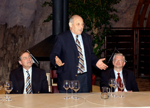 Il presidente Durnwalder con gli ospiti dell'Assia (Foto USP/Pertl)Una cinquantina tra politici e amministratori - guidati dal presidente del Governo dell'Assia Roland Koch, dal presidente del Consiglio regionale Norbert Kartmann e da cinque ministri del Land - ha partecipato ieri sera (giovedì 29) al ricevimento offerto dalla Provincia. Il presidente Luis Durnwalder ha accolto gli ospiti tedeschi nella cantina nella roccia del Centro "Laimburg" di Vadena e ha fatto il punto della collaborazione tra Alto Adige e Assia, in particolare nei settori del turismo e dei prodotti di qualità. La delegazione ha sottolineato che l'Alto Adige rappresenta anche per i Länder tedeschi un esempio riuscito di amministrazione in senso federalista e che saprà affrontare bene l'imminente allargamento ad Est dell'Unione europea.