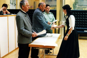 Ai 115 neocacciatori, comprese alcune donne, che hanno superato lo specifico esame il presidente della Provincia Luis Durnwalder ha consegnato oggi (mercoledì 9) a Bolzano il diploma di abilitazione all'attività venatoria.