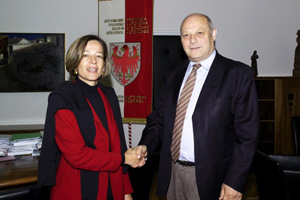 Nel suo ufficio di Palazzo Widmann il presidente Durnwalder ha incontrato oggi (mercoledì 13) la giurista Burgi Volgger, nuovo difensore civico altoatesino. Nella sua visita di presentazione la signora Volgger ha discusso con Durnwalder delle esperienze raccolte nei primi sei mesi nel nuovo incarico, dell'organizzazione del lavoro e dei progetti futuri della difesa civica, che nelle sue intenzioni avrà tra i punti qualificanti una rinnovata attenzione verso la tutela dei giovani e dei pazienti.