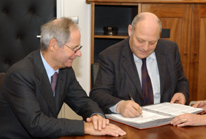 La firma di Durnwalder e Plattner sul nuovo contratto (Foto USP/Pertl)A Palazzo Widmann il presidente Durnwalder e il numero uno di Carispa hanno firmato ogi (martedì 14) il contratto con il quale la Provincia affida all'istituto di credito l'espletamento del relativo Servizio di tesoreria per i prossimi cinque anni. Carispa, come noto, si è aggiudicata l'incarico a seguito di bando di concorso europeo, "offrendo per la Provincia le migliori condizioni tra le cinque banche che vi hanno partecipato", ha spiegato il presidente Durnwalder, fiducioso di un buon rapporto di collaborazione.