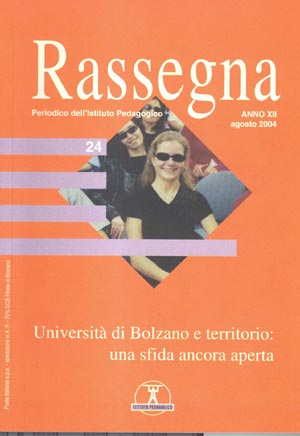 “Rassegna”, coordinata da Carlo Bertorelle e diretta da Bruna Visintin Rauzi, è la rivista culturale dell'Istituto pedagogico giunta al suo dodicesimo anno di attività. La rivista, attraverso numeri monografici, si impegna in un confronto di pensiero e di esperienze nel mondo formativo e nel territorio.La rivista si avvale di competenze molto varie e collega le ricerche locali a contributi nazionali ed europei. Nel suo ultimo numero, curato dal prof. Franco Frabboni, noto pedagogista di Bologna e docente a Bressanone fin dall'avvio di quella facoltà, affronta un tema di notevole interesse, e in un momento delicato della vita dell'ateneo bolzanino, giunto al suo settimo anno di vita e posto di fronte a scelte decisive per il suo futuro: quale rapporto ha stabilito l'università in questi primi anni con il territorio provinciale? quali contatti e quali apporti reciproci ci sono tra le varie facoltà e la vita culturale, sociale, economica e, in generale, i problemi della società altoatesina? Una buona parte dell'analisi riguarda gli interrogativi, le attese, le esigenze che vengono dal mondo scolastico e formativo.