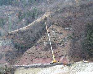 Nelle vicinanze del nuovo tunnel sulla strada statale che da Ponte Gardena conduce alla valle ladina sono in corso lavori di consolidamento dei versanti rocciosi. Con l'ausilio di una gru alta 60 metri oggi (mercoledì 26) si è provveduto a stendere reti paramassi su una superficie di 4500 metri quadrati.