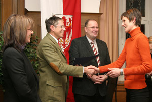 Un momento della consegna dei diplomi "Accademia Leadership" ad Innsbruck.Quaratacinque donne fra imprenditrici e dirigenti provenienti dall'Alto Adige e dal Tirolo del Nord e Orientale hanno partecipato al programma di qualificazione per donne in posizioni professionali apicali "Accademia Leadership" tenutosi fra gennaio e novembre 2004 nell'ambito di un progetto Interreg per iniziativa congiunta di "Frau in der Wirtschaft Tirol", del Servizio donna della Provincia di Bolzano e del Comitato provinciale pari opportunità fra uomo e donna con il supporto del Land austriaco del Tirolo, della Provicnia Autonoma di Bolzano, dell'Unione Europea e della Repubblica italiana. Lo scorso fine settimana la conclusione del progetto è stata festeggiata con la cerimonia di consegna dei diplomi tenutasi ad Innsbruck, alla quale era presente per la Provincia di Bolzano la responsabile partner del progetto, Walburga Gamper, del Servizio donna.
