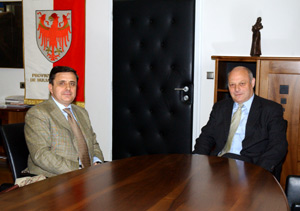 Durnwalder con il direttore Sangermano (Foto USP/Pertl)Durnwalder e Sangermano hanno discusso dei servizi garantiti dall'Agenzia delle Entrate di Bolzano, che oltre che occuparsi dell'amministrazione e del controllo del servizio di riscossione di tasse e imposte svolge per conto della Provincia il servizio di riscossione dell'Irap, l'imposta sulle attività produttive. "Il nuovo direttore intende muoversi in modo pragmatico nel combattere gli abusi e migliorare il servizio e potrà contare sulla collaborazione con l'ente pubblico", ha riferito Durnwalder, al quale Sangermano ha illustrato il progetto, anche alla luce della sua esperienza internazionale, di adeguare il sistema informatico alle esigenze locali.