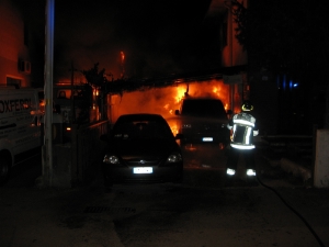 Um 21.20 Uhr wurde die Berufsfeuerwehr Bozen zu einem Brand in der nahegelegenen Handwerkrezone in der Drususallee gerufen. Der Zerknall einer Gasflasche und die dadurch entstandene Stichflamme konnte bereits am Sitz der Berufsfeuerwehr wahrgenommen werden. Bei Ankunft am Einsatzort standen bereits mehrere Fahrzeuge und eine Überdachung in Brand. Auch das Gebäude, in dem sich eine Tischlerei befindet war bereits betroffen. Durch das schnelle Eingreifen konnte ein weiteres Ausbreiten der Flammen verhindert werden. Im Wohnbereich konnten die Auswirkungen des Brandes bis auf geringe Rauchschäden in der Wohnung im 1.Obergeschoß begrenzt werden. Ein Bewohner wurde zur Kontrolle ins Krankenhaus von Bozen gebracht. Unterstützt wurde die Berufsfeueuerwehr von der Freiwilligen Feuerwehr Gries.