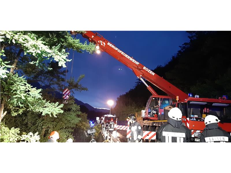 Am Freitag, den 26. Juli 2019 um 19.30 Uhr wurde unsere Kranmannschaft nach Anforderung durch die FF Latsch in den Vinschgau zu einer Bergung eines Lieferwagens gerufen. Der von der Straße abgekommene Lieferwagen befand sich zwischen dem Radweg und der Staatsstrasse Nr.38 in misslicher Lage auf Höhe von KM 175.