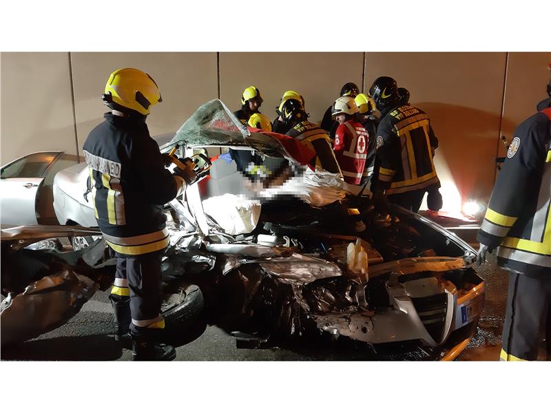 Fahrzeug wird nach Kollision mit Leitplanke in Unterführung geschleudert