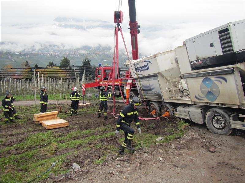 Am Vormittag des 21. Novembers wurde die Kranmannschaft der Berufsfeuerwehr Bozen zur Unterstützung der Freiwilligen Feuerwehr Schenna zur Bergung eines Schwerfahrzeuges gerufen.