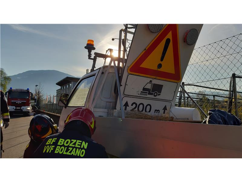 Heute Morgen um 9:00 Uhr wurde die Berufsfeuerwehr Bozen zu einem schweren Verkehrsunfall auf die Landesstraße zwischen Bozen und Siebeneich gerufen. Ein Pkw prallte auf ein Kleinfahrzeug des Landesstraßendienstes. Ein Straßenarbeiter wurde dadurch unter dem Dienstfahrzeug eingeklemmt. Zur Bergung der Person musste das Kleinfahrzeug angehoben und das zweite Fahrzeug zurückgezogen werden. Die sofort eingeleiteten Wiederbelebungsmaßnahmen durch das Notarztteam waren jedoch erfolglos. Die Straße wurde für ungefähr 2 Stunden für den gesamten Verkehr gesperrt. Im Einsatz standen auch die Freiwilligen Feuerwehren von Siebeneich und Terlan, die Carabinieri und die Notfallseelsorge.