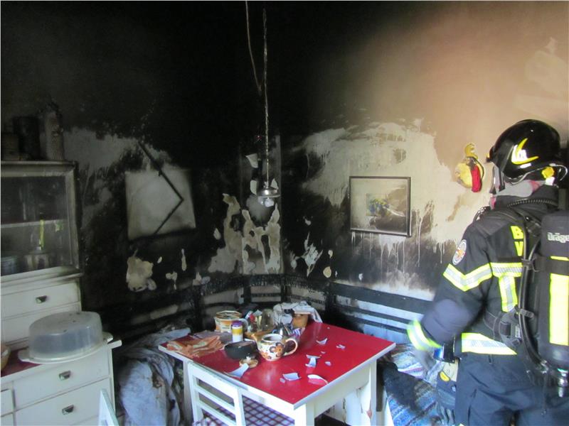 Kücheneinrichtung wird durch Brand stark beschädigt, ein Bewohner erleidet leichte Rauchgasvergiftung