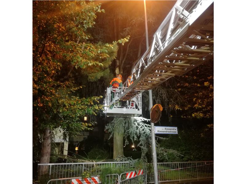 - An mehreren Orten in der Stadt wurden Zugänge und Straßen von herabhängenden Ästen sowie von umgeknickten Bäumen befreit.