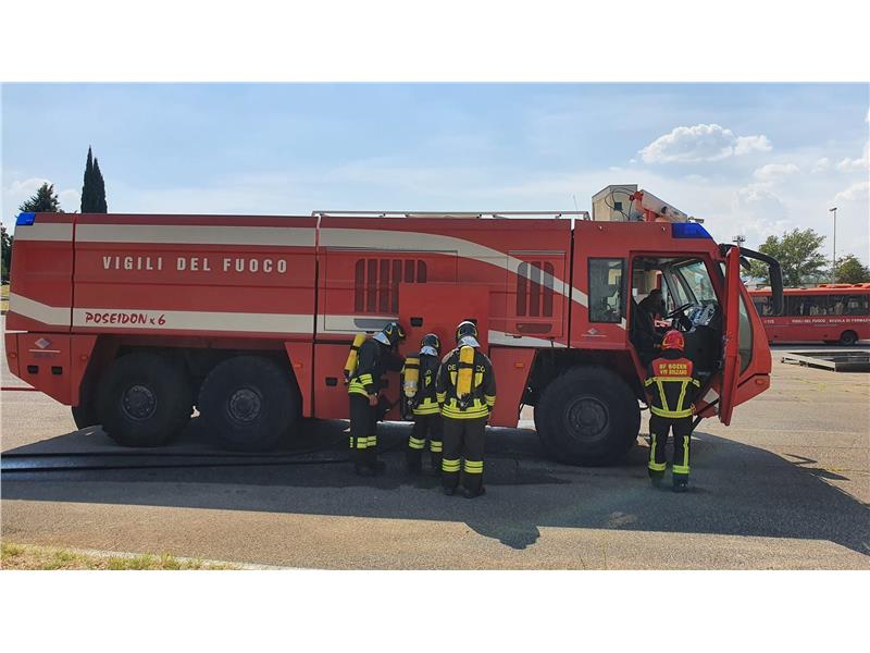 Die Berufsfeuerwehr Bozen hat mit Februar 2020 ein Projekt gestartet, um fünf Brandmeister aus den eigenen Reihen zu Instruktoren im Bereich Flughafenbrandschutz auszubilden. Diese fünf Mitarbeiter haben insgesamt acht Wochen an der zentralen Feuerwehrschule des nationalen Feuerwehrkorps in Rom verbracht, um in Theorie und Praxis die Figur des Ausbilders im Flughafenbrandschutz zu erlernen. Dabei wurde aber nicht nur auf eine reine technische Wissensvermittlung Wert gelegt, ein Schwerpunkt lag auch in der Erlernung von didaktischen Methoden, damit das Weitergeben des Lernstoffes noch effizienter erfolgen kann. In den letzten Wochen konnten die letzten beiden Brandmeister ihre Ausbildungseinheiten abschließen, indem sie unter Anleitung von erfahrenen Ausbildern 63 Feuerwehrkollegen von den Flughäfen aus Mailand, Turin, Rimini und Brindisi bei praktischen Löschübungen an Flugzeugsimulatoren ausbildeten.