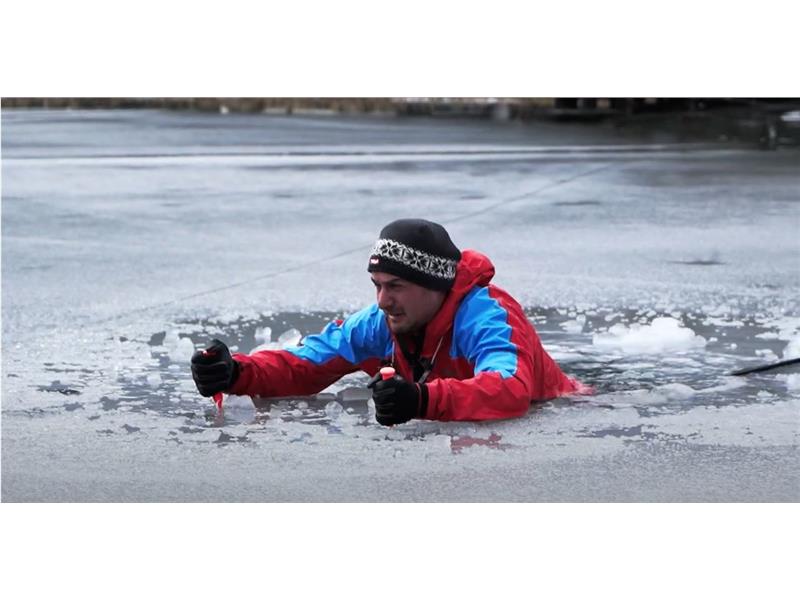 Verwenden Sie sogenannte "Eisretter" als Selbstschutz (siehe beiliegendes Video).