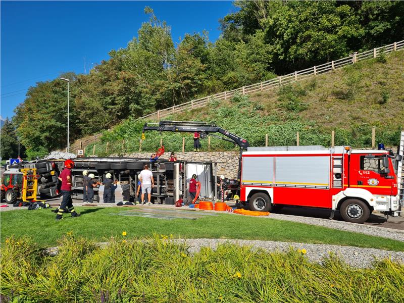 Auf der Vinschgauer Staatsstraße SS38 kippte am Morgen des 16. Augusts gegen 07:45 Uhr ein Sattelschlepper beladen mit Papierpaletten um und blockierte den Kreisverkehr bei der Ortseinfahrt Latsch. Der Fahrer blieb unverletzt.