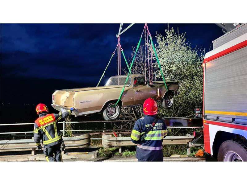 Heute in den frühen Morgenstunden wurde die Berufsfeuerwehr Bozen und die Freiwillige Feuerwehr Frangart zu einem Verkehrsunfall auf die SS42 Höhe MEBO-Einfahrt Eppan gerufen. Ein Oldtimer wurde, nachdem er die Leitplanke touchierte, mehrere Meter durch die Luft geschleudert und schließlich durch einen Baum aufgehalten, auf der Böschung zum stehen gekommen. Der Fahrer musste in aufwändiger Arbeit aus dem Fahrzeug befreit und auf den darunterliegenden Feldweg transportiert werden. Anschließend wurde das Fahrzeug mittels Kran geborgen. Im Einsatz standen ebenfalls der Rettungsdienst mit Notarzt, eine Streife der Carabinieri und der Straßendienst. Während des Einsatzes war die Straße nach Eppan einspurig befahrbar.