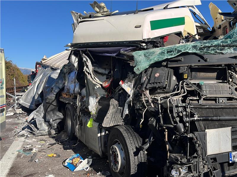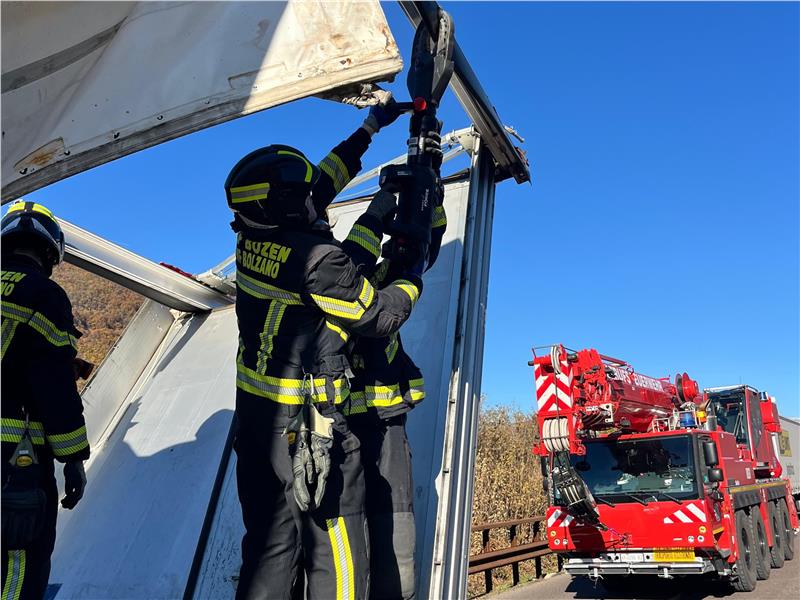 Gegen viertel vor zwölf wurden die Berufsfeuerwehr Bozen und die Freiwillige Feuerwehr Neumarkt zu einem Verkehrsunfall zwischen Schwerfahrzeugen auf die Südspur der Brennerautobahn zwischen Bozen Süd und Neumarkt gerufen, wo baustellenbedingt ein Gegenverkehrsbereich eingerichtet war.